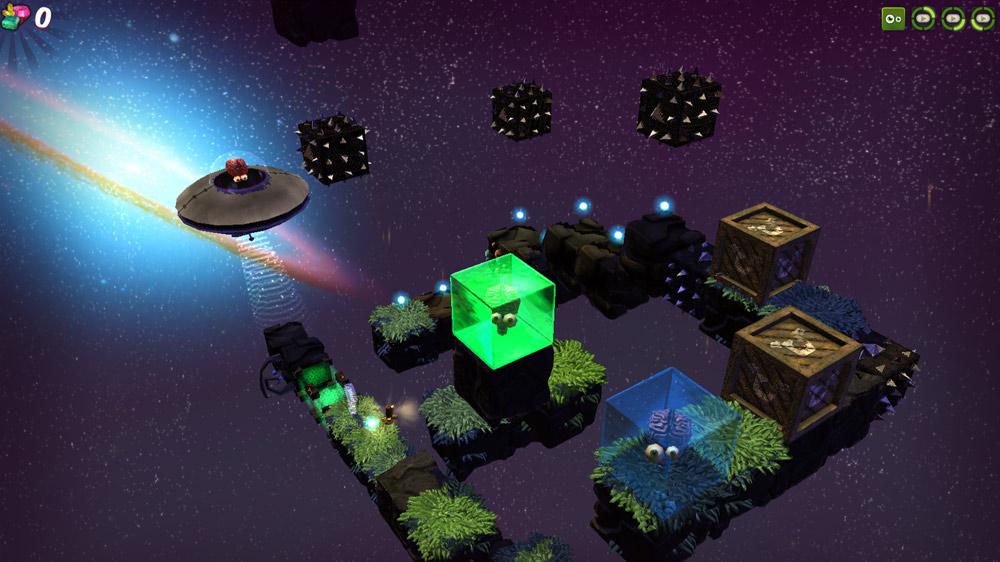 Alien Jelly is a highly polished 3-D puzzle game where you must rescue several stranded aliens by getting them back to their spaceships. The gameplay is reminiscent of XBLA title Ilomilo, in that you can move the aliens one space at a time across several paths made up of blocks.