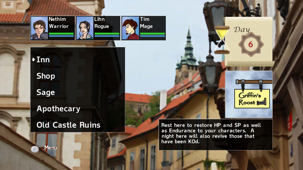 There's an Inn, where you can rest up and regain life and magic points as well as Endurance (more on that soon).