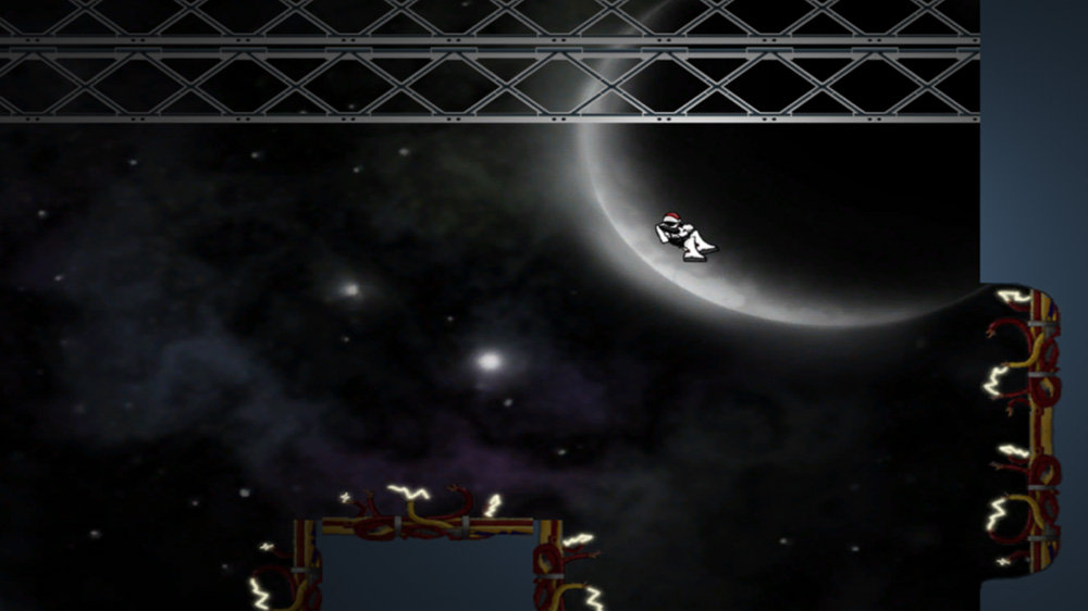 The spaceman has the ability to run and jump, as well as being able to switch off gravity at any point, thereby making himself subject to inertia.