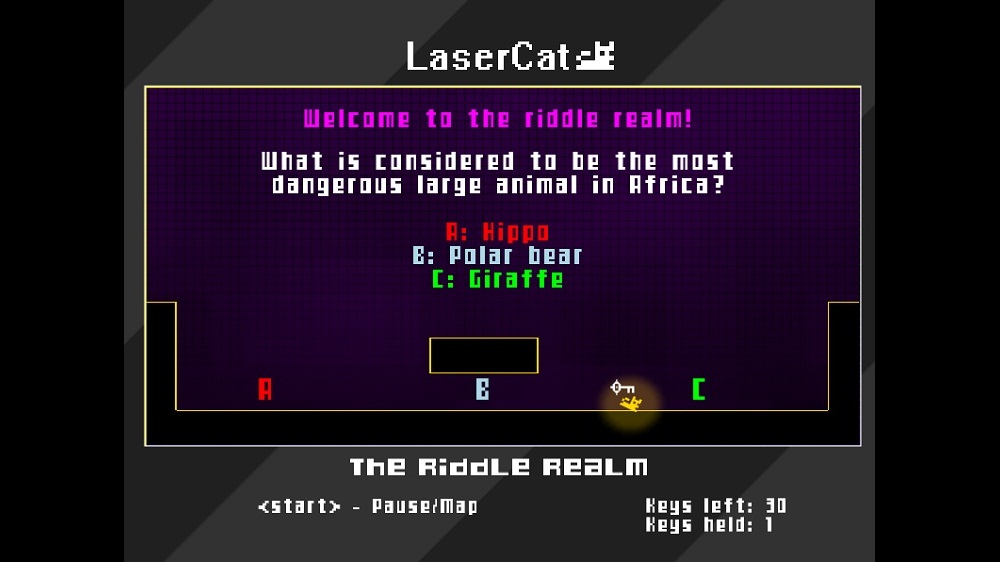LaserCat is one of those games that is just plain fun to play. There are no frustrating sticking points and no cheap deaths; yet the game still manages to present just the right amount of a challenge for it to be a very enjoyable experience. I would highly recommend it to anyone who likes platform games.